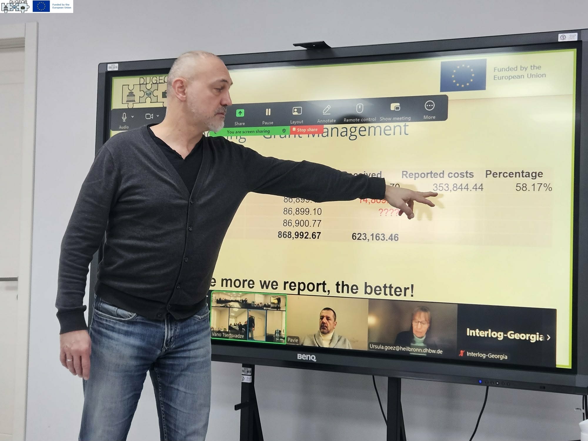 პროექტის პირველი სამუშაო დღე მთლიანად დაეთმო პროექტის მენეჯმენტის შეხვედრას, სადაც პარტნიორი უნივერსიტეტებისა და ორგანიზაციების წარმომადგენლებმა პროექტის მიმდინარეობა, მათ შორის პერიოდული რეპორტის ფინანსური და შინაარსობრივი ასპექტები, შესრულებული აქტივობები, გამოწვევები და შემდგომი ნაბიჯები განიხილეს.